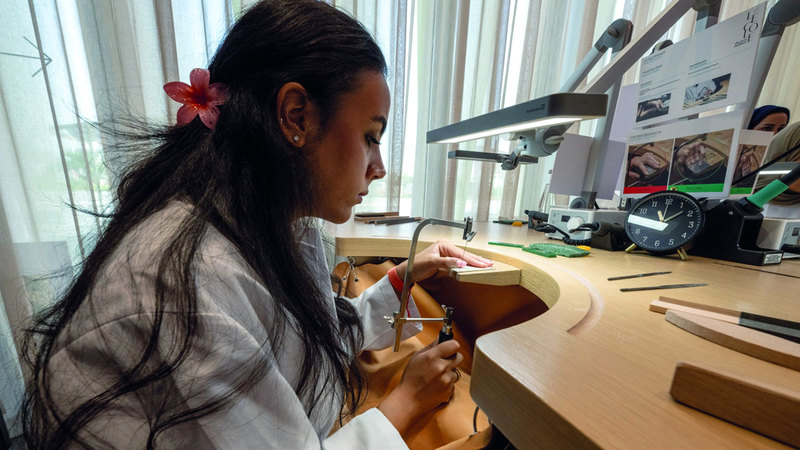 وأضافت أن هذه الحرفة تتطلب سنوات طويلة من التعلم، والمدرسة تقدم نبذة عن هذا العالم، إذ تركز على كل التقنيات المستخدمة في دور المجوهرات الفاخرة، وبعدها يقرر الراغب الغوص في تفاصيل هذا العالم.