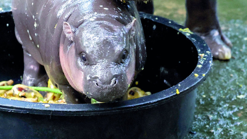 يثير أحدث مشاهير الإنترنت في تايلاند، وهي «مو دينغ» أنثى فرس النهر الوليدة، تحديات لعمال حديقة الحيوان بسبب جذبها حشوداً ضخمة للغاية إلى الحديقة التي تبعد ساعتين إلى الجنوب من العاصمة بانكوك. ولفرس النهر الصغيرة ملايين المعجبين على منصات التواصل الاجتماعي الذين يتابعون مغامراتها العفوية، بما في ذلك محاولة عض ركبة الحارس الذي يعتني بها، على الرغم من عدم نمو أسنانها بعد.