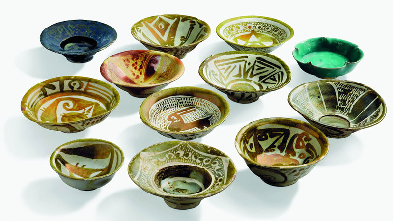 • 12 طبقاً فخارياً من العراق، تعود للعصر العباسي، يتضمنها المعرض.