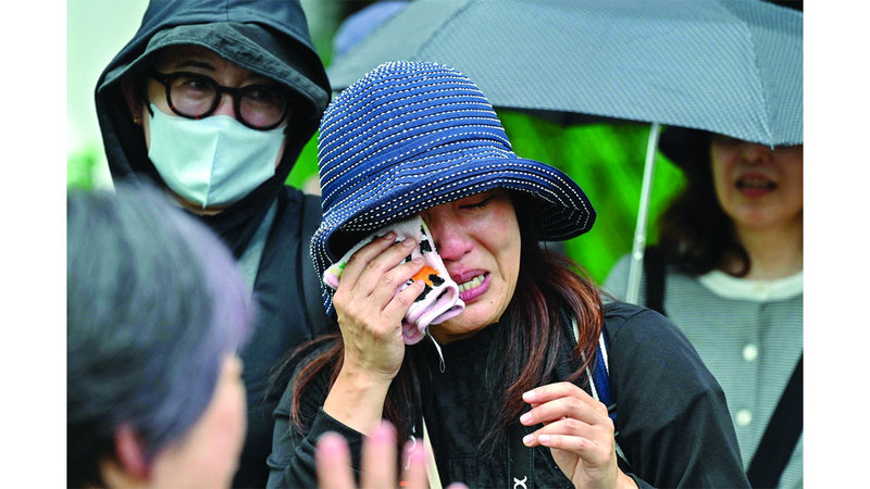 يابانية تبكي خلال «الزيارة الأخيرة» لزوجي الباندا في اليابان. أ.ف.ب