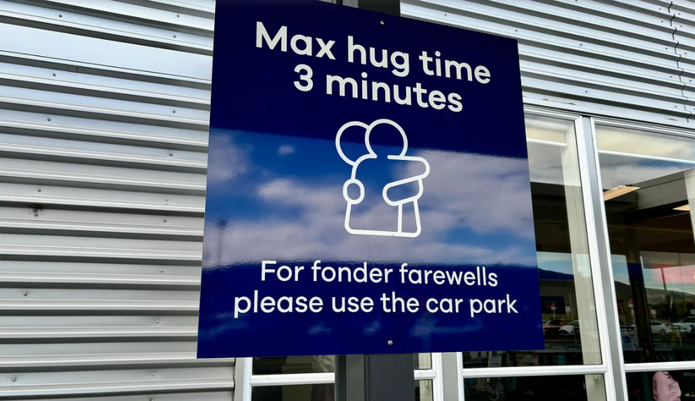 أثار مطار دنيدن في نيوزيلندا جدلاً في وسائل التواصل الاجتماعي، بسبب حصره عناق الوداع والاستقبال بين المسافرين وعائلاتهم بمدة معينة، والطلب منهم إجراءها في موقف السيارات.