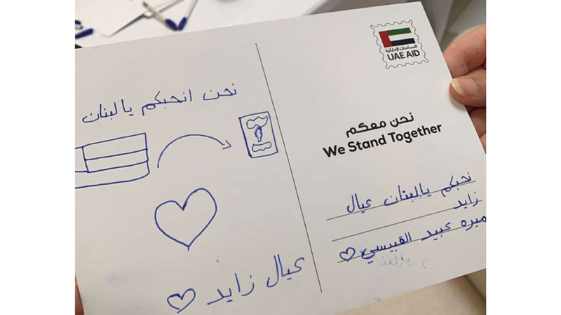 وتحت وسم «#الإمارات_معك_يا_لبنان» نشرت النجمة داليدا خليل صورة لها خلال مشاركتها مع الفرق التطوعية قائلة «معك يا لبنان من أرض الإمارات أرض الخير»، وتحت الوسم نفسه نشرت الفنانة السورية رغدة، بصحبة الإعلامية ميسون عزام، صورة ذيلتها بالقول «معك يا لبنان شكراً للإمارات»، في الوقت الذي توجه فيه السوبر ستار الفنان راغب علامة، بالشكر لدولة الإمارات.