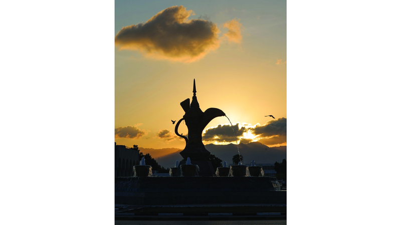 غروب يلوّن الأفق، ويضفي سحره الخاص على قلب مدينة الفجيرة، حيث دوّار الدلة، الذي يحتفي بشكل جمالي برمز تراثي أصيل.. ذلك الذي يدور بكرم في البيوت والمجالس الإماراتية، ليضيّف الزوار، ويحيّي عشاق القهوة العربية، وينشر بصحبة الفناجين الصغيرة عبق المشروب المحبب.