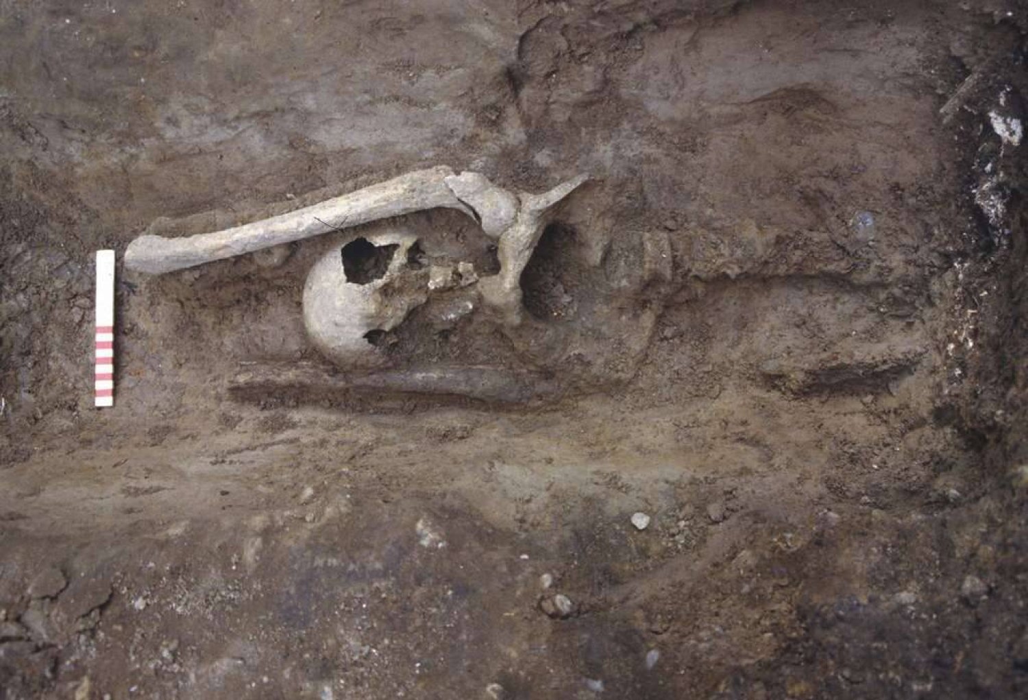 وذكرت «إندبندنت» أنّ الهيكل الذي اكتُشف في السبعينات دُفن في مقبرة رومانية بوضعية الجنين. اعتُقد بدايةً أنّ العظام تعود إلى القرن الثاني أو الثالث الميلادي، رغم أنّ ترتيب الجثة في وضعية الجنين كان غير معتاد في الحقبة الرومانية.