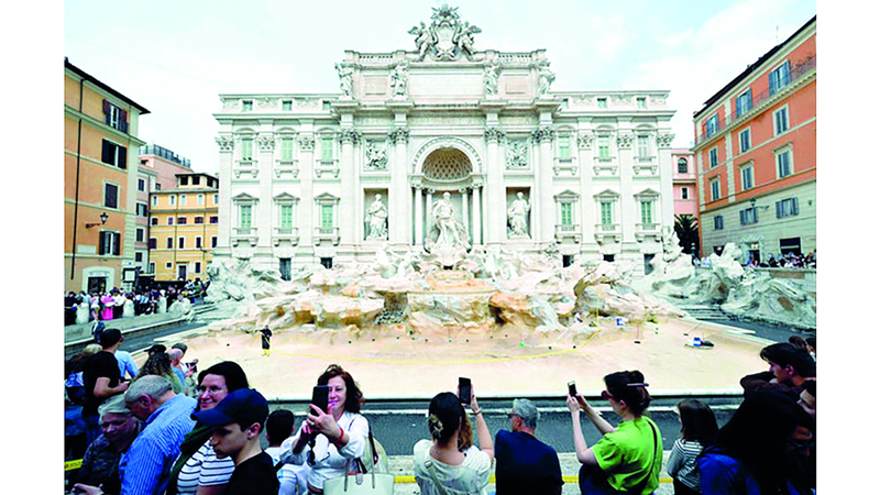 افتُتح، أمس، جسر مشاة مؤقت فوق نافورة تريفي في روما، للسماح للسياح بزيارة الموقع الشهير أثناء خضوعه لعملية تنظيف.