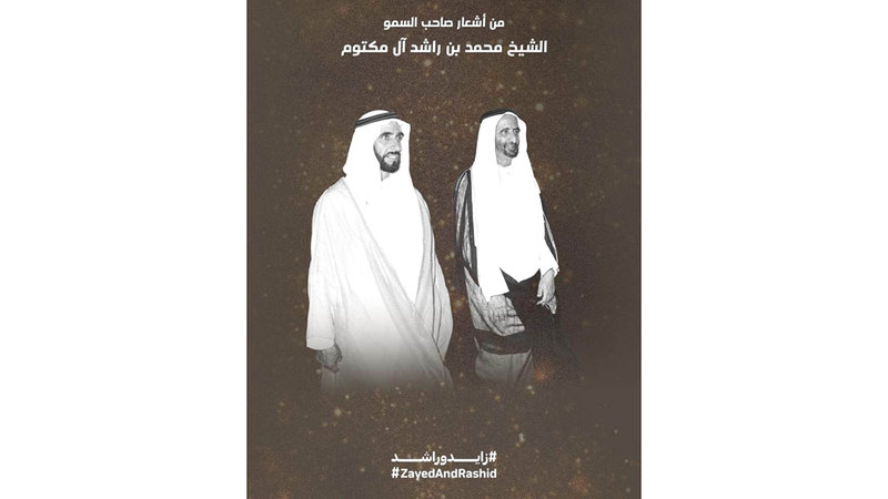 أطلق «براند دبي»، الذراع الإبداعي للمكتب الإعلامي لحكومة دبي، أغنية «زايد وراشد»، من أشعار صاحب السموّ الشيخ محمد بن راشد آل مكتوم، نائب رئيس الدولة رئيس مجلس الوزراء حاكم دبي، رعاه الله، وذلك في إطار حملة «#زايدوراشد» التي انطلقت بتوجيهات سمو الشيخ أحمد بن محمد بن راشد آل مكتوم، النائب الثاني لحاكم دبي رئيس مجلس دبي للإعلام، احتفاءً بذكرى المغفور لهما الشيخ زايد بن سلطان آل نهيان، والشيخ راشد بن سعيد آل مكتوم، طيّب الله ثراهما، وعرفاناً بالجميل، وإحياءً لذكراهما وما قدماه من جهود في سبيل قيام اتحاد دولة الإمارات، وتقديراً لاسمَين عزيزَين على قلب كل إماراتي.
