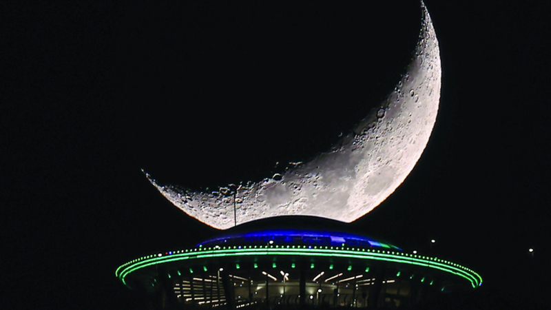 القمر يغيب خلف استراحة السحب في خورفكان. تصوير: زيشان أحمد