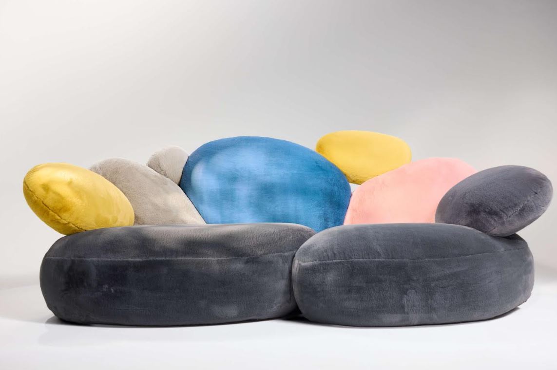 في المقابل، تتميّز أريكة "أوربس" بشكلها الناعم وحضورها الأكثر سلاسةً، وهي مستوحاةٌ من الأشكال الطبيعية، وتنفرد بهيكلها الذي يشبه تراصف الحصى، لضمان المتانة والراحة المطلقة، مع إضفائها تأثيراً بصريّاً متناغماً مشابهاً للتموّجات الرقيقة. يوازن هذا التصميم بصورةٍ مثالية بين أناقة الشكل والحضور العمليّ، ويجسد فلسفة "كريم رشيد" التي تقوم على ما يمكن وصفه بـ "النحت الوظيفيّ" الذي يجعل من أريكة "أوربس" قطعةً مميّزة وقادرة على تحويل أيّ مكانٍ يحتضنها إلى مساحةٍ جذابة وهادئة.