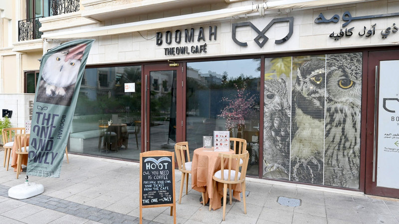 وأوضح محمد الشحي لـ«الإمارات اليوم»، أن فكرة المقهى منتشرة في اليابان، مثلما تنتشر الصقارة في الإمارات، وأراد أن ينقلها إلى الدولة بشكل يتناسب مع طبيعة المجتمع، لافتاً إلى أن افتتاح «بومة كافيه» كان في عام 2020 بهدف تغيير نظرة المجتمع لطائر البوم باعتباره نذير شؤم، وإتاحة الفرصة لزوّار المكان للتعرف إليه عن قرب والتفاعل معه ومعرفة معلومات عنه وعن أسلوب حياته وصفاته والأماكن التي يتواجد فيها حول العالم وغير ذلك من المعلومات، وفي الوقت نفسه يوفر مكاناً وبيئة آمنة لهذه الطيور، إلى جانب الرعاية اللازمة والتفاعل الاجتماعي مع البشر بشكل يومي.