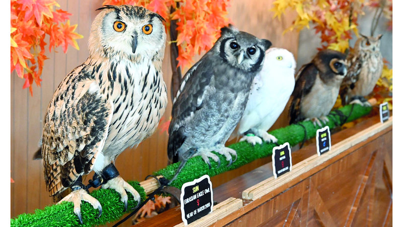 . المقهى يتيح لزوّاره مشاهدة أنواع مختلفة من طيور البوم والتقاط الصور معها، لتغيير الصورة النمطية عنها باعتبارها «نذير شؤم».