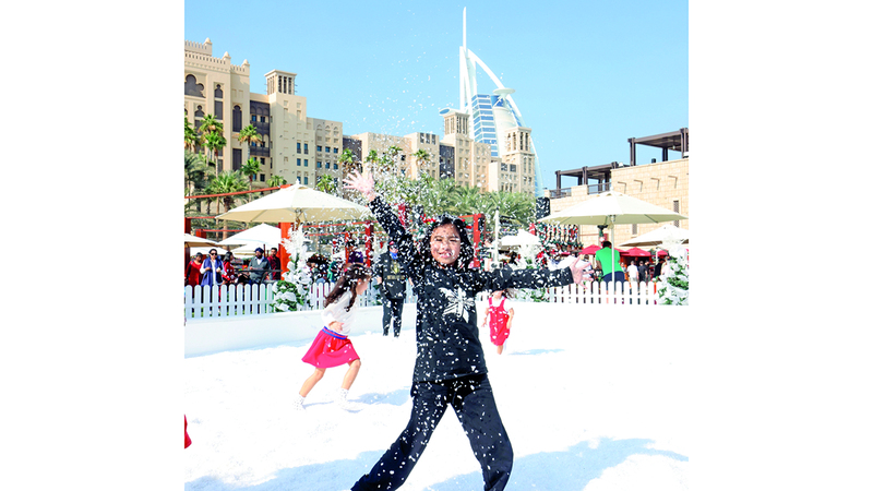 دبي المضيافة التي تفتح ذراعيها للجميع، توفر لأهلها وزوارها من جهات العالم المختلفة كل ما يبعث على الفرح، ويرسم الابتسامات على وجوه الصغار والكبار، لاسيما في ظل هذه الأجواء البديعة: طقس رائع، و«أجمل شتاء في العالم»، وموسم عطلات، وإجازات سعيدة، و«زهرات» تلعب ببراءة، وهي تودع عاماً وتنتظر آخر حافلاً بالأمنيات الطيبة، بين كرات الثلج، وملامح البهجة والسرور والأنشطة والفعاليات العائلية الممتعة التي ترضي كل الأذواق.. بين جنبات سوق مدينة جميرا الذي يعد وجهة مميزة تستقطب السياح والزوار.