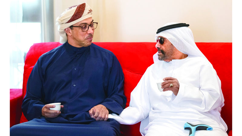 منصور بن زايد يعزي حميد حمد دلموك الظاهري في وفاة زوجته