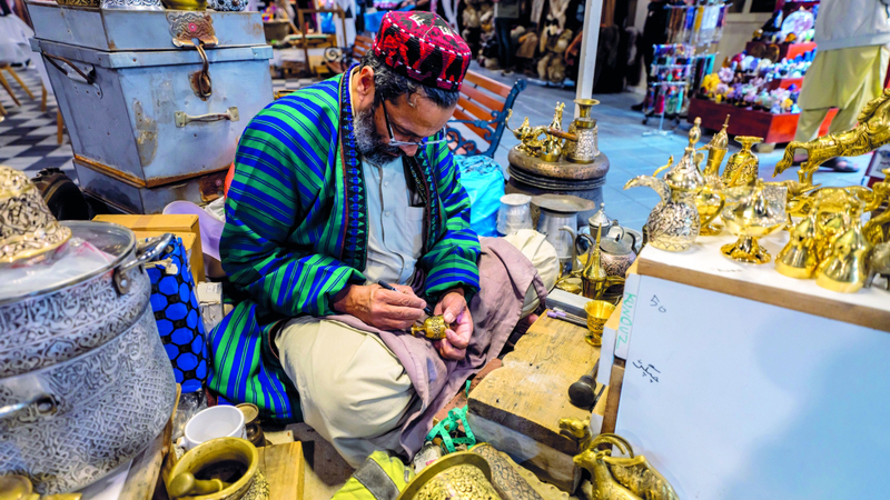 بخبرة سنين العمر الطويل، يجلو المعدن ليعيد له البريق، وينكبّ على تشكيل تحفته الصغيرة، لتبدو بأبهى صورة، لتخطف العيون التي تقدّر الأصالة، وتعرف قيمة ما صنعته الأيادي لا الماكينات، وتعبت عليه، بحب، الأنامل الخبيرة بصبر ساعات وربما أيام، من أجل إبهار ضيوف القرية العالمية، والإعلان عن تراث بلاد ذلك الحِرفي الأصيل، بين جنبات الجناح الأفغاني في الوجهة الشهيرة بدبي.. «وجهة السعادة» التي تجتذب الملايين سنوياً، وينتظرونها من عام إلى آخر، للاستمتاع بابتكارات قادمة من الشرق والغرب، تعبّر عن 90 ثقافة من جهات العالم المختلفة تحت سقف واحد.