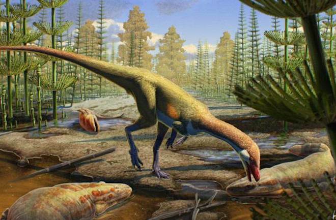 ويقول ديف لوفليس، عالم الأبحاث في متحف الجيولوجيا بجامعة ويسكونسن، والذي شارك في قيادة العمل مع طالب الدراسات العليا آرون كوفنر: "لدينا، بهذه الحفريات، أقدم ديناصور استوائي في العالم، وهو أيضًا أقدم ديناصور في أمريكا الشمالية".