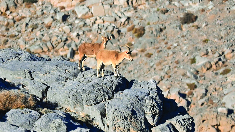 الوعول الجبلية تزيّن جبل المبرح في رأس الخيمة. تصوير: يوسف الهرمودي