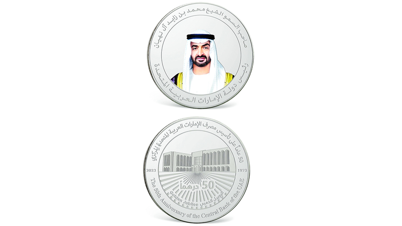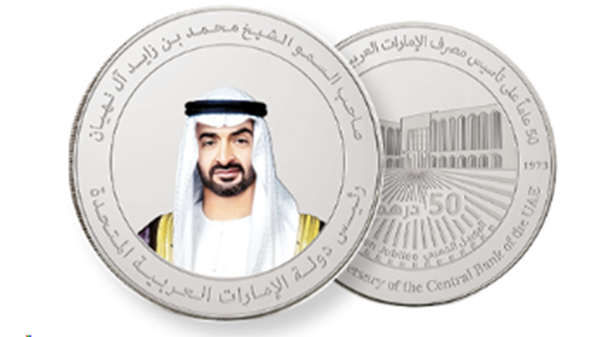 أصدر مصرف الإمارات العربية المتحدة المركزي مسكوكة تذكارية من الفضة بمناسبة مرور 50 عاماً على تأسيسه.