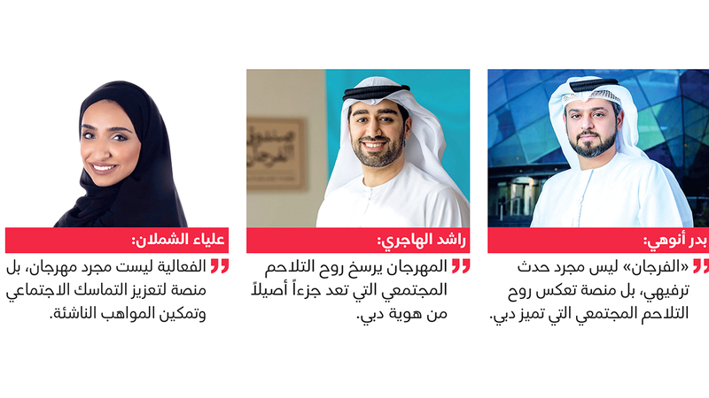 وقال المدير التنفيذي لمؤسسة المرافق العامة في بلدية دبي، بدر أحمد حسن أنوهي، إن «مهرجان الفرجان ليس مجرد حدث ترفيهي، بل منصة تعكس روح التلاحم المجتمعي التي تميز دبي، فمن خلاله نشهد تفاعلاً حقيقياً بين مختلف فئات المجتمع».