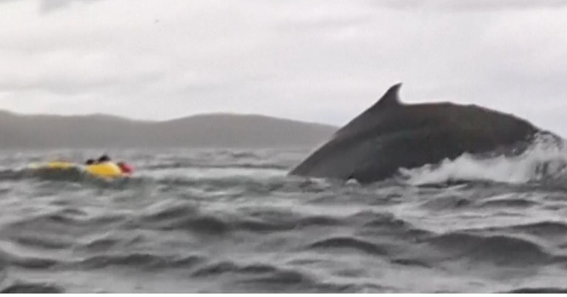 حوت أحدب يلتهم رياضي تجديف ثم يلفظه حياً