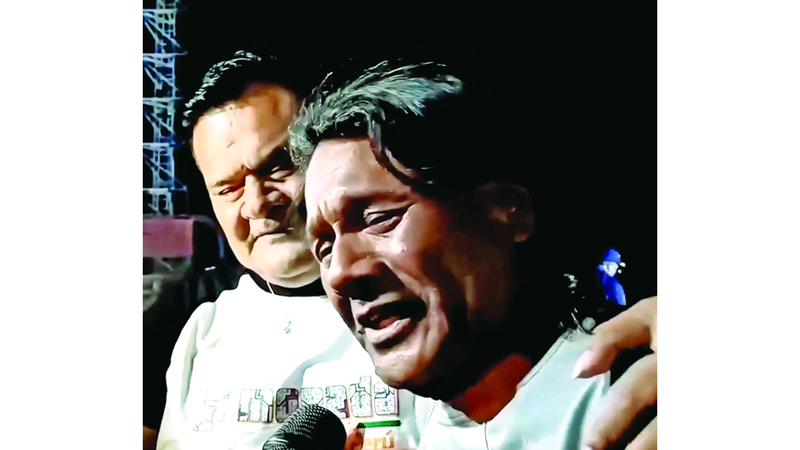 ماكسيمو نابا متحدثاً لوسائل إعلام في بيرو بعد نجاته. رويترز