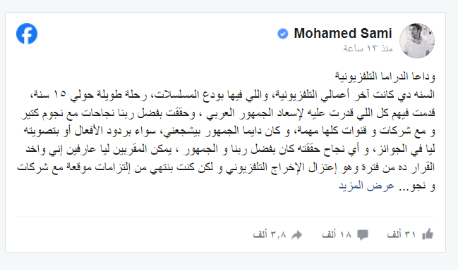 مسلسل "إش إش" يطيح بمخرجه .. محمد سامي يعلن الإعتزال