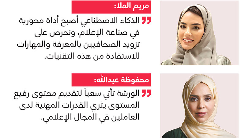 وأضافت: «لا شك أن هذه الورشة تُشكّل خطوة مهمة في جهودنا الرامية للإسهام في تعزيز قدرات الإعلاميين، وإكسابهم مهارات جديدة تساعدهم على التعامل مع التقنيات المتطورة، لاسيما أدوات الذكاء الاصطناعي، بصورة مهنية، ما يسهم في تطوير المشهد الإعلامي، ليس على المستوى المحلي فحسب، بل على مستوى المنطقة».