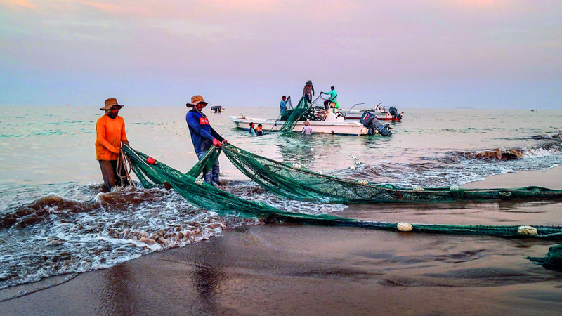 مع آخر ضوء، وبصحبة غروب الشمس الذهبية، صيادون يلمون الشباك، ويحصون ما رُزقوا به من البحر، وما يجود به من خيرات، وينتظرون نهاية سعيدة، بعد يوم طويل حافل بالعمل والعرق والأمل، وكذلك بالقصص والأغنيات وأحلام زملاء المهنة الواحدة، والضحكات التي تهوّن كل صعب.. وذلك على شاطئ مربح الهادئ في الفجيرة، حيث الأمواج الهادرة، والرمال الناعمة البيضاء هناك في الساحل الشرقي من إمارات الخير، إذ يعد هذا المكان وجهة لمحبي الاسترخاء والاستمتاع بالطبيعة البكر، بين الماء والجبل.