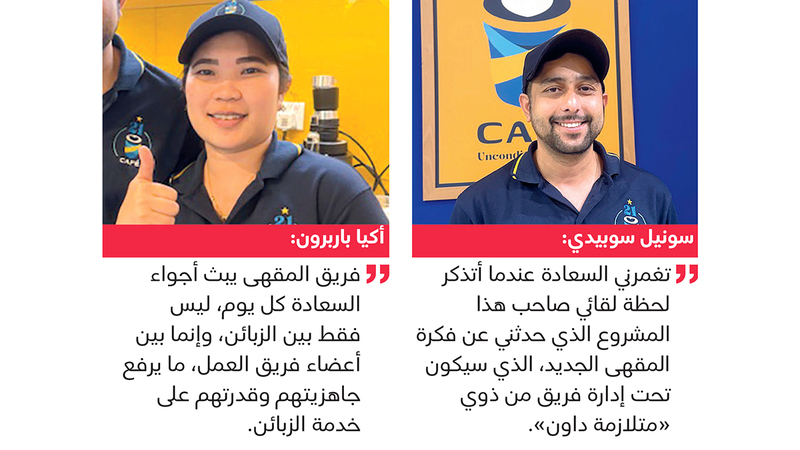 وتابع سونيل: «يحدوني شعور بالفخر بنجاح فريقنا في تكريس حضوره الفاعل في المقهى، وقدرته الفائقة على استيعاب تفاصيل التجربة والتعلم بسرعة لإتقان مختلف المهام، خصوصاً إعداد أنواع القهوة وتقديمها للزبائن الذين يتوافدون يومياً لخوض هذه التجربة الجميلة معهم، معبرين عن سعادتهم ودهشتهم بنجاح الفريق وجدارته، متمنين أن تعمم هذه التجربة في كل مكان في الإمارات».