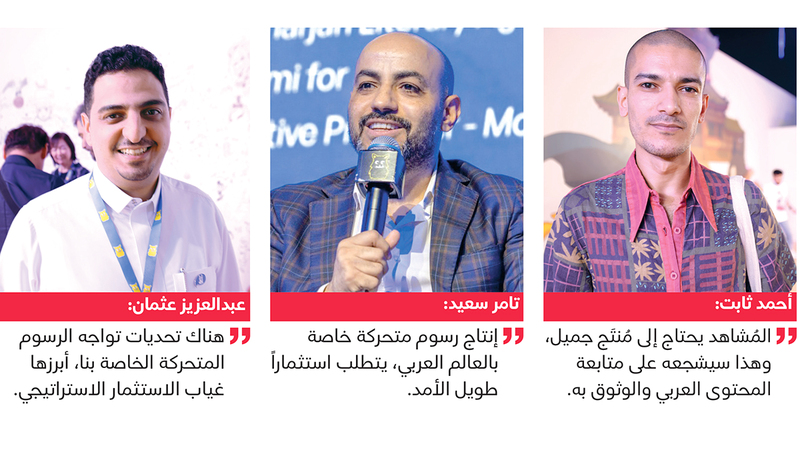أما مؤسس شركة «زيز للإنتاج»، عبدالعزيز عثمان، فأشار إلى العديد من التحديات في العالم العربي لجهة إنتاج الرسوم المتحركة الخاصة بنا، ومن أبرزها، البحث عن المنتجين والمنصات الراغبة في الاستثمار الاستراتيجي بهذا المجال، والذي يستغرق الكثير من الوقت، وكذلك اكتمال المنظومة من الشركات القادرة على إنتاج الرسوم المتحركة بجودة عالية، وكذلك الموزعين، مروراً بالمواهب.