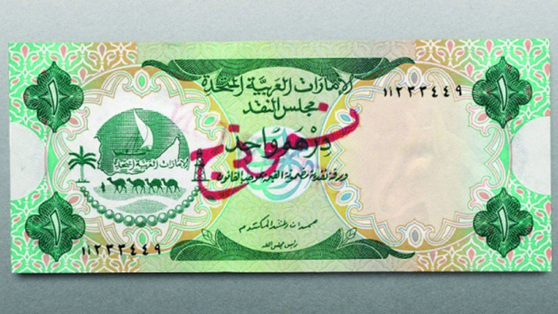 يضم المعرض عملة ورقية من فئة درهم واحد، ضمن أول إصدار للعملات النقدية في الدولة، وقد أسهم الدرهم في دفع عجلة التنمية الاقتصادية، وحل مكان العملات المختلفة التي كانت مستخدمة في الإمارات السبع، ولاتزال العملة النقدية من فئة درهم قيد الاستخدام في صورة عملة معدنية، بينما سحبت العملات الورقية من الفئة نفسها من التداول.