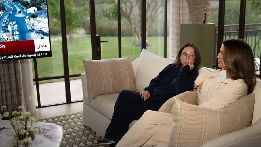 ونشرت الملكة رانيا العبدلله صورة لها مع ابنتها الأميرة ايمان وهما تتابعان احتفالات المملكة بعيد الاستقلال على شاشة التلفزيون.