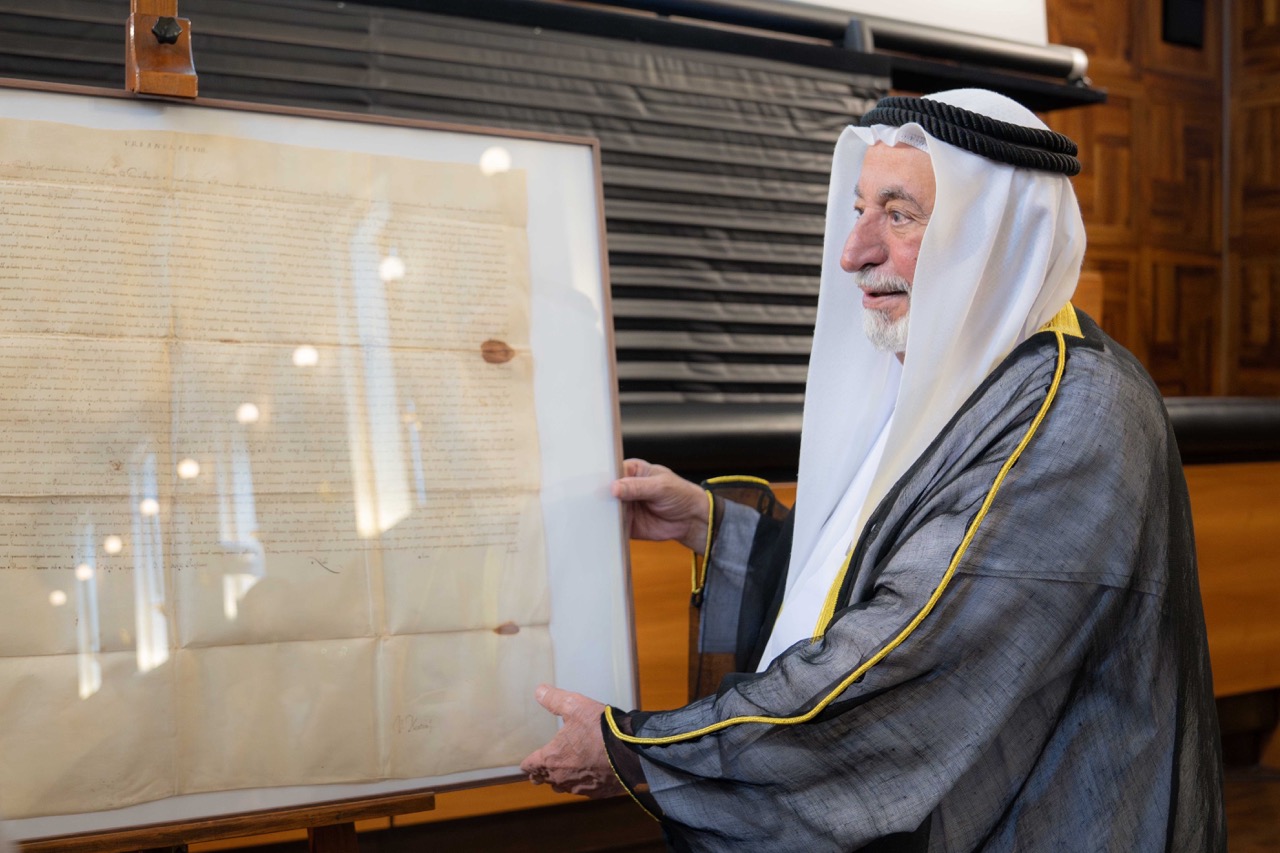 حاكم الشارقة يهدي جامعة القلب المقدس في ميلانو مخطوطاً نادراً وكتاب "مرسوم بابوي"