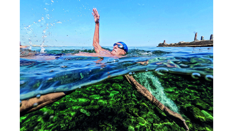 كان لازارو دياز، البالغ 75 عاماً، متقاعداً أيضاً عندما تعلّم السباحة كعلاج لمشكلات القلب وآلام الظهر المتكررة، ويقول دياز الذي يقطع مسافة ستة كيلومترات ذهاباً وإياباً من منزله يومياً ليمارس رياضة السباحة المنعشة لمسافة 400 متر: «بدأتُ أشعر بآثار التقدم في السن».