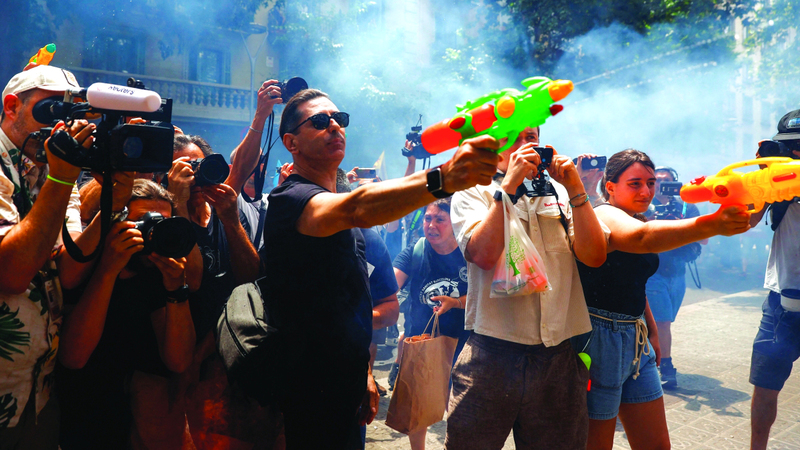 إسبان يحتجون على السياحة المفرطة بـ «مسدسات المياه»