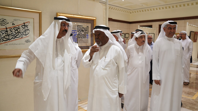محمد المر وبلال البدور وعدد من الشخصيات الثقافية خلال افتتاح المعرض. من المصدر