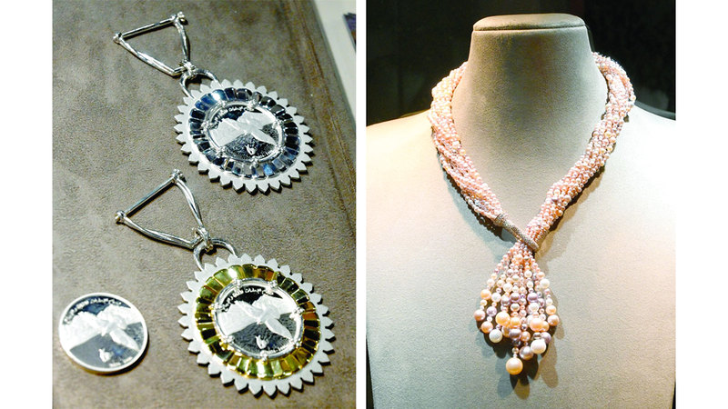 وأكمل: «هناك أيضاً مجموعة (البحر) التي تعتمد على اللؤلؤ تقديراً لمكانته وتأثيره الاقتصادي في تاريخ الإمارات، واحتفاء بكل من عملوا في الغوص واستخراج اللؤلؤ والتجارة فيه من أهلها، إلى جانب مجموعة (صك) التي استُخدمت فيها عملات إماراتية مثل الفلس والـ10 فلوس، وهي عملات لم تعد متداولة مثل السابق، ولكننا رغبنا في التعريف بها وتوظيفها بأسلوب جمالي مميز، خاصة أن بعضها صدر في مناسبات معينة».