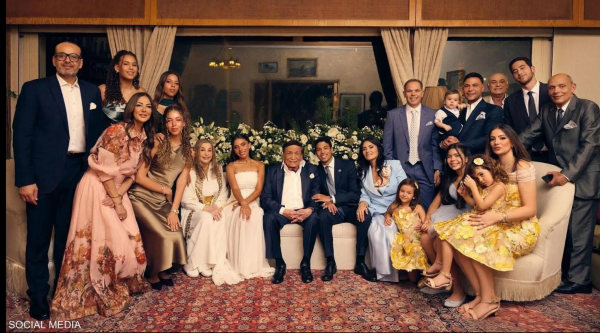 وفي ظهور نادر للفنان المحبوب الذي يتجنب الأضواء منذ سنوات ظهر عادل إمام في الصورة يتوسط العروسين، مع عدد من أفراد عائلتيهما.