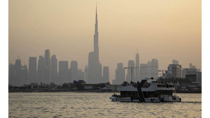 ضيوف دبي على متن رحلة بحرية، يستمتعون بجولة في الخور، ومشاهدة أفق المدينة ومعالمها الأيقونية المتفردة، ومشهد أطول برج في العالم، برج خليفة الذي يستقطب عدسات الكاميرات، لتتبارى في التقاط صورة لهذا الصرح الشامخ الذي يعد من رموز المدنية، ومحطة لطموحها الذي يلامس السحاب.