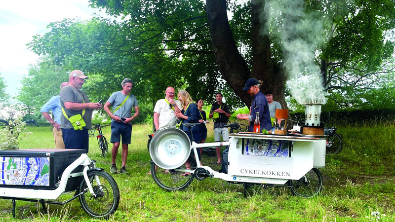 ينظّم الشيف الدنماركي مورتن كريغر وولف رحلات مطبخية على دراجته الهوائية في أنحاء كوبنهاغن، تجمع بين استكشاف المدينة والتعرّف على الأطباق وفنون الطهو.