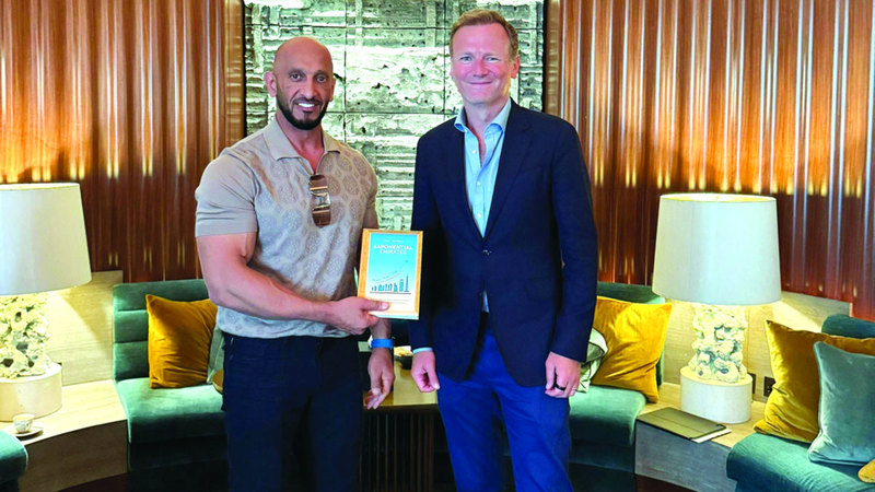 خلال لقائه مؤلف كتاب «الإمارات المتسارعة»