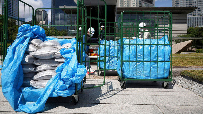 نُقلت تربة غير ملوثة، ولكنها ذات إشعاع خفيف، من مقاطعة فوكوشيما اليابانية، أمس، إلى مكتب رئيس الوزراء شجيرو إيشيبا، لإعادة استخدامها في محاولة لإثبات أنها آمنة.