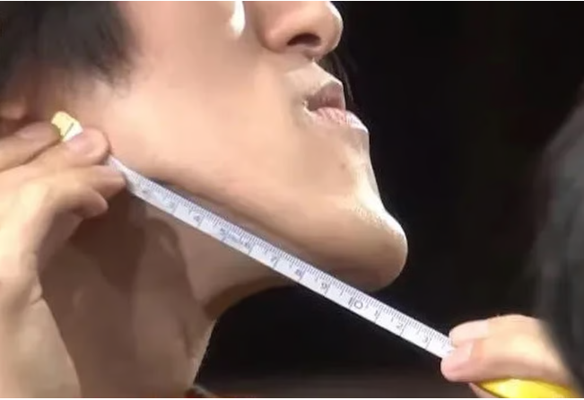 وتُظهر صور طفولته أن ذقنه كانت تبدو طبيعية حتى سن الثالثة، ولكن بحلول سن الخامسة، بدأت ذقنه تبدو مدببًة بشكل ملحوظ. عندما دخل الصف الخامس، أخبره أحد زملائه في الفصل أن ذقنه طويلة جدًا، وبدأ يُدرك مدى بروزها.