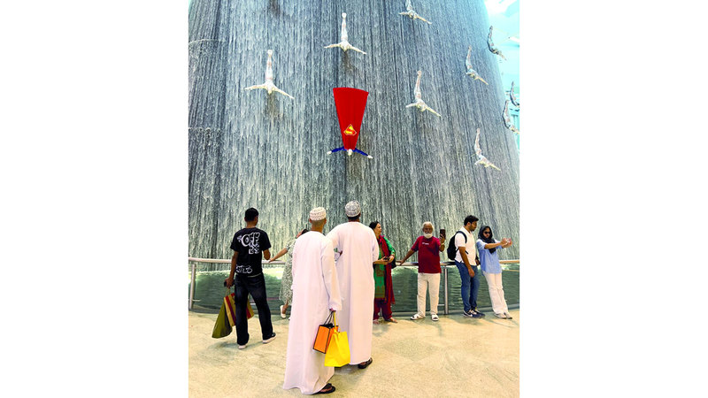«سوبرمان» بين غواصي شلالات «دبي مول»