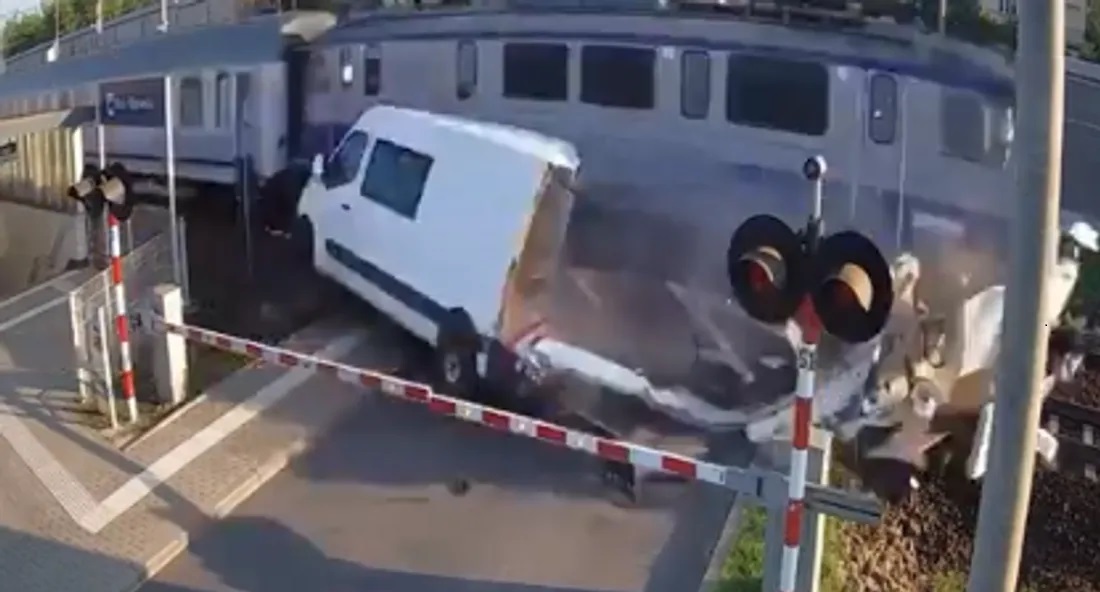 نجا سائق سيارة من حادث مروع بعد أن اصطدم قطار بمركبته عند معبر سكة حديد مزدحم في إحدى المناطق القريبة من مدينة كراكوف البولندية.