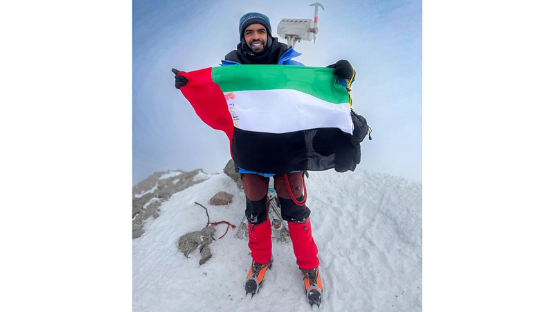 نجح المغامر الإماراتي راشد غانم الشامسي، في رفع علم دولة الإمارات على قمة جبل إلبروس، أعلى نقطة في قارة أوروبا بارتفاع 5642 متراً فوق سطح البحر، متوّجاً بذلك رحلة شاقة خاضها وسط العواصف الثلجية والرياح العاتية في قلب سلسلة جبال القوقاز الروسية، وفي مشهد يختصر معنى العزيمة والانتماء، في ظروف مناخية شديدة البرودة وتضاريس وعرة تطلبت أقصى درجات التحمل.