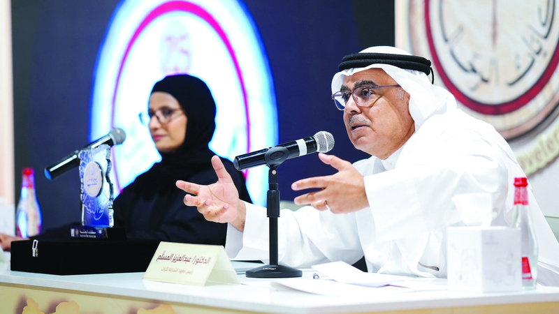 عبدالعزيز المسلم وعائشة الشامسي خلال المؤتمر الصحافي. وام