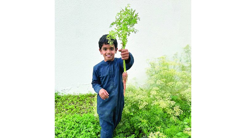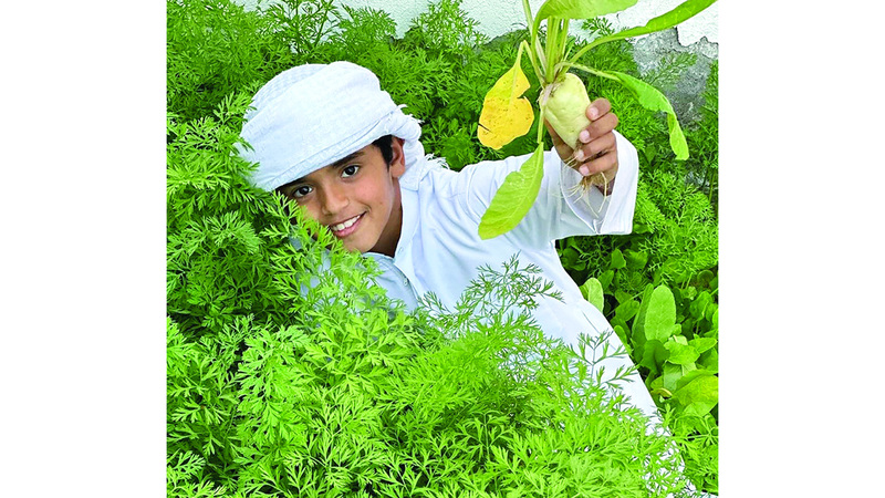 لا تقاس المساحات بالنسبة للطفل الإماراتي، مصلح سعيد هداد العرياني، بالأمتار بل بالشغف وحب الابتكار والإبداع، فخلف أركان صغيرة مخصصة لأغراض الزراعة ومجموعة من الأحواض المرتبة بعناية، يجلس مصلح (تسعة أعوام) بين شتلاته ونباتاته المزهرة كخبير زراعي متمرس، نجح بأنامله الصغيرة في تحويل منزله إلى «مختبر أخضر»، وزرع 15 نوعاً من الخضراوات في مساحة محدودة، من دون مبيدات أو أسمدة كيميائية، في الوقت الذي لم تقف تجربته عند حدود الحديقة، بل امتدت إلى مدرسته التي قاد فيها مصلح فريقاً زراعياً صغيراً وقدم ورشاً عملية لزملائه في الزراعة والتخطيط الموسمي، إلى جانب ذلك دخل بعفويته المطبخ ليحضر ويبتكر من ثمار جهده مشروعاً بيئياً تراثياً نال بفضله جائزة على مستوى الدولة، راسماً مساراً استثنائياً لطفولته المتقدة بالأفكار المبدعة والخلاقة وعلاقته الوثيقة بالأرض والبيئة التي أثمرت وعياً ومسؤولية وحلماً يكبر يوماً بعد يوم.