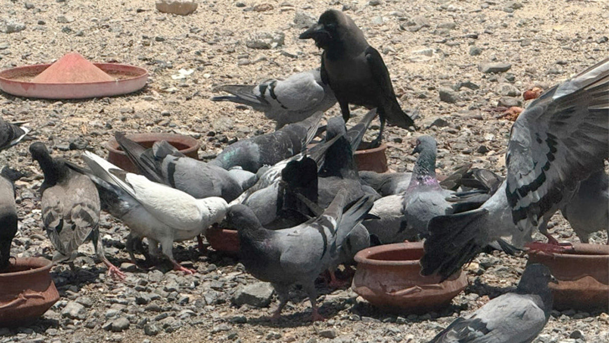 . اجتماع الحمام والغربان على طاولة واحدة، يعني أن التعايش والتسامح والاحترام ليست شعارات بل تتخطى البشر إلى الطيور.