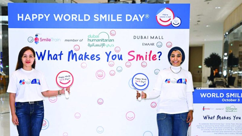 تنظم منظمة «سمايل ترين»، أكبر منظمة دولية متخصصة في علاج الشفة الأرنبية والحنك المشقوق، فعالية «جدار الابتسامة» في دبي، بدعم من «دبي الإنسانية»، وذلك احتفالاً باليوم العالمي للابتسامة الذي يوافق 3 أكتوبر.