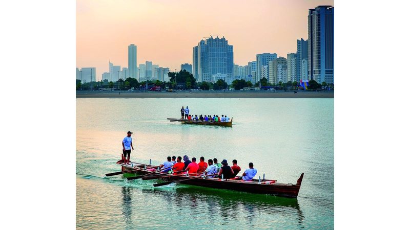 بصحبة أشعة الشمس الذهبية في آخر النهار، وعلى صفحة مياه هادئة.. يمارس عشاق التجديف رياضتهم المفضلة على شواطئ الفجيرة الجميلة، ويستمتعون على متن القوارب بهذه الأجواء التي تحفز على النشاط، وربما عيون الفريق على منافسة ما أو بطولة قد تكون قريبة، في لعبة تتطلب تناغم الجميع، وتعاونهم وعدم تهاون أي عضو منهم، والإنصات جيداً لتعليمات «القائد المحمس» في المقدمة.