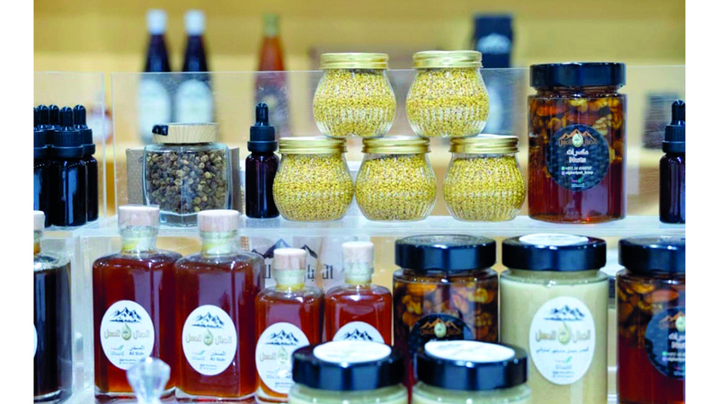القرية تضم 15 جناحاً لعرض أنواع العسل ومشتقاته. الإمارات اليوم